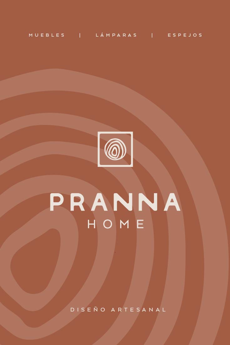 Diseño de branding para Pranna Home con identidad visual en fondo terracota, elaborado por Manawa Creative como parte del proyecto de branding estratégico.