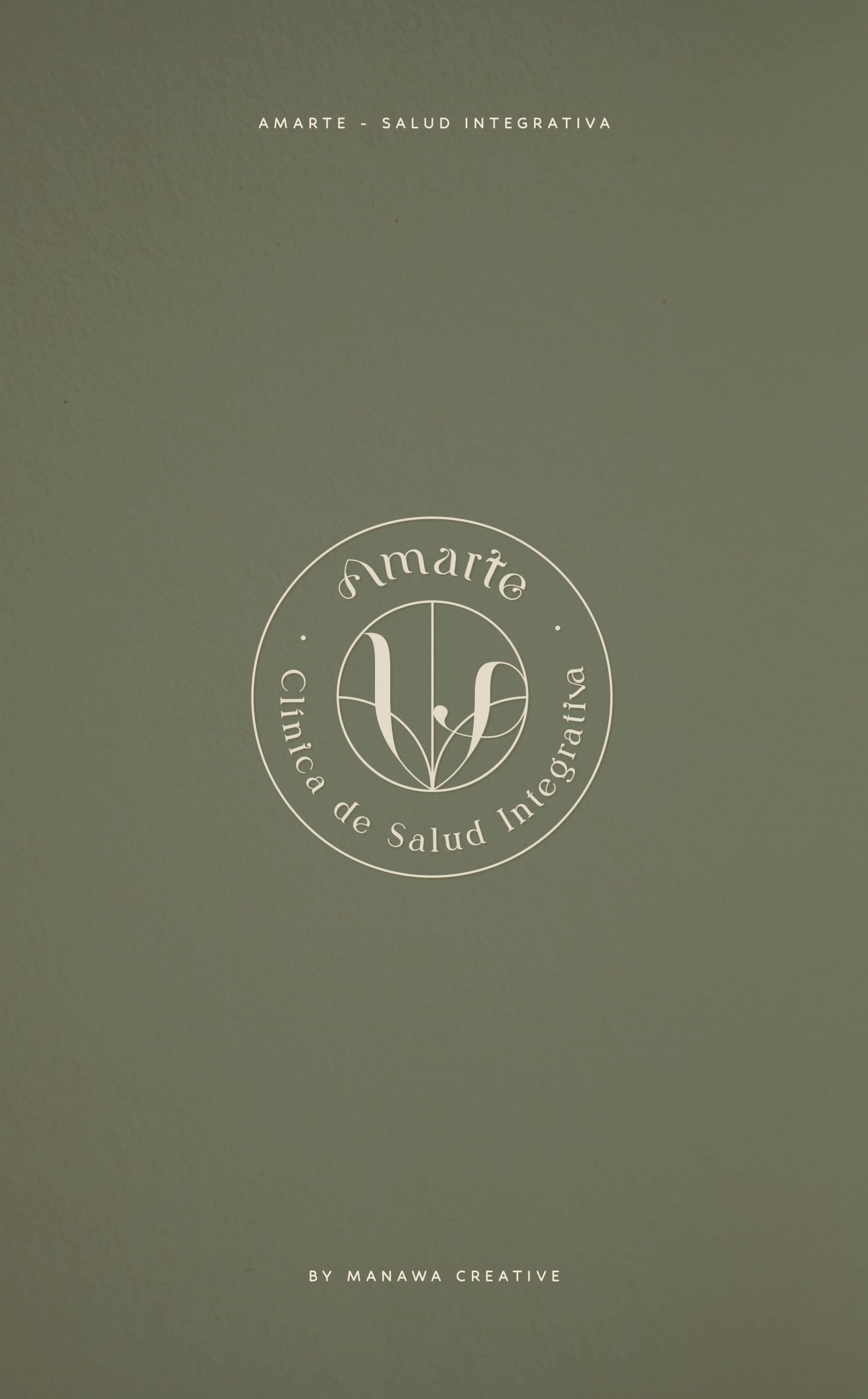 En esta imagen se muestra cómo el logotipo de la Clínica Amarte puede aplicarse con distintas variaciones cromáticas sin perder coherencia. El fondo verde oliva transmite equilibrio, naturaleza y salud, pilares clave del enfoque integrativo de esta clínica. Un desarrollo realizado por Manawa Creative como parte de su servicio de branding estratégico para negocios de bienestar.