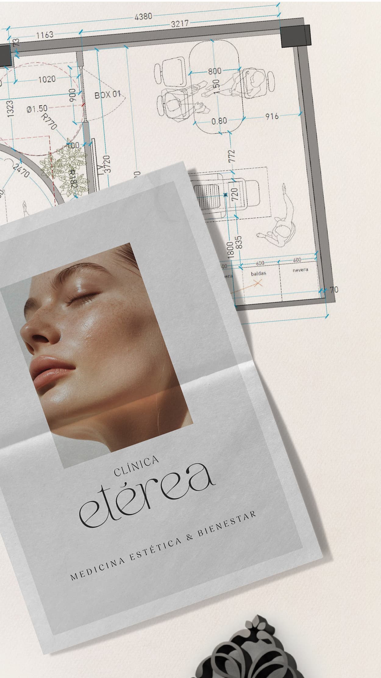Diseño de folleto para Clínica Etérea integrando fotografía, logotipo e identidad verbal. Un soporte clave dentro de la estrategia de marca y comunicación creada para la clínica.
