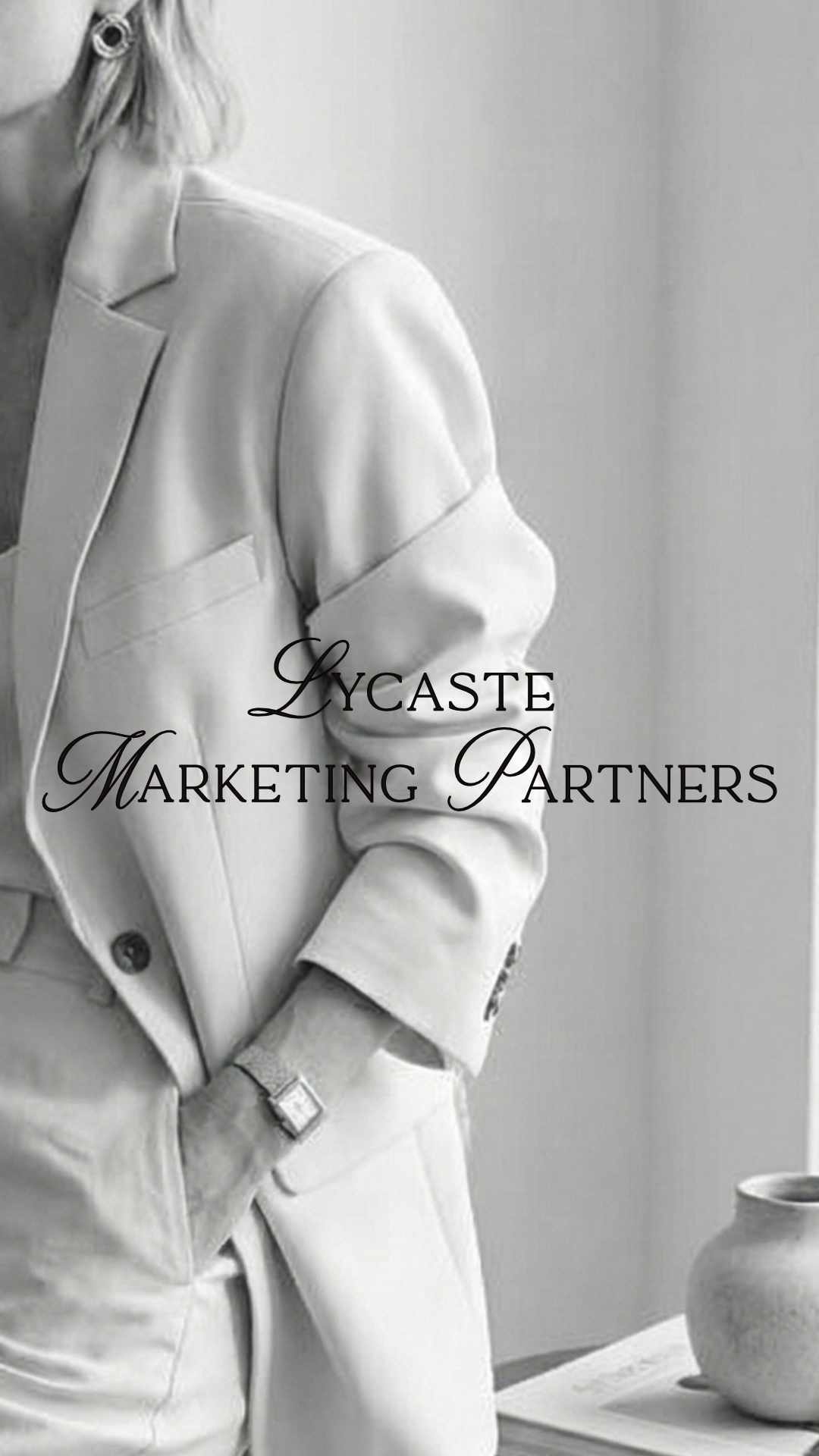 Fotografía editorial aplicada dentro del universo visual de Lycaste Marketing Partners. Estética de lujo silencioso con tipografía serif refinada, diseñada por Manawa Creative.