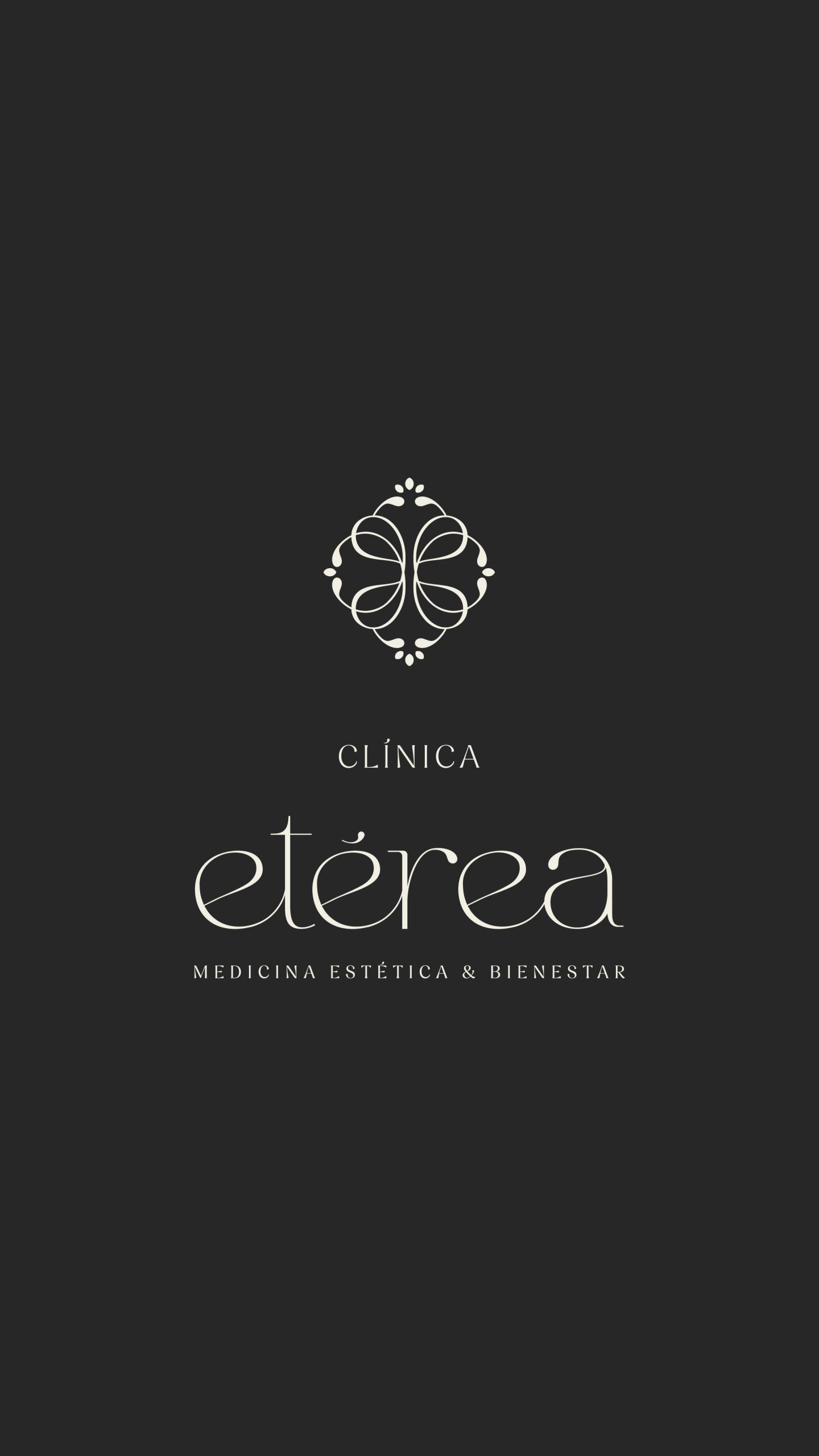 Composición de la identidad visual de Clínica Etérea en su versión oscura, diseñada para destacar el isotipo y el logotipo manteniendo elegancia, equilibrio y coherencia dentro del sistema de marca estratégico.