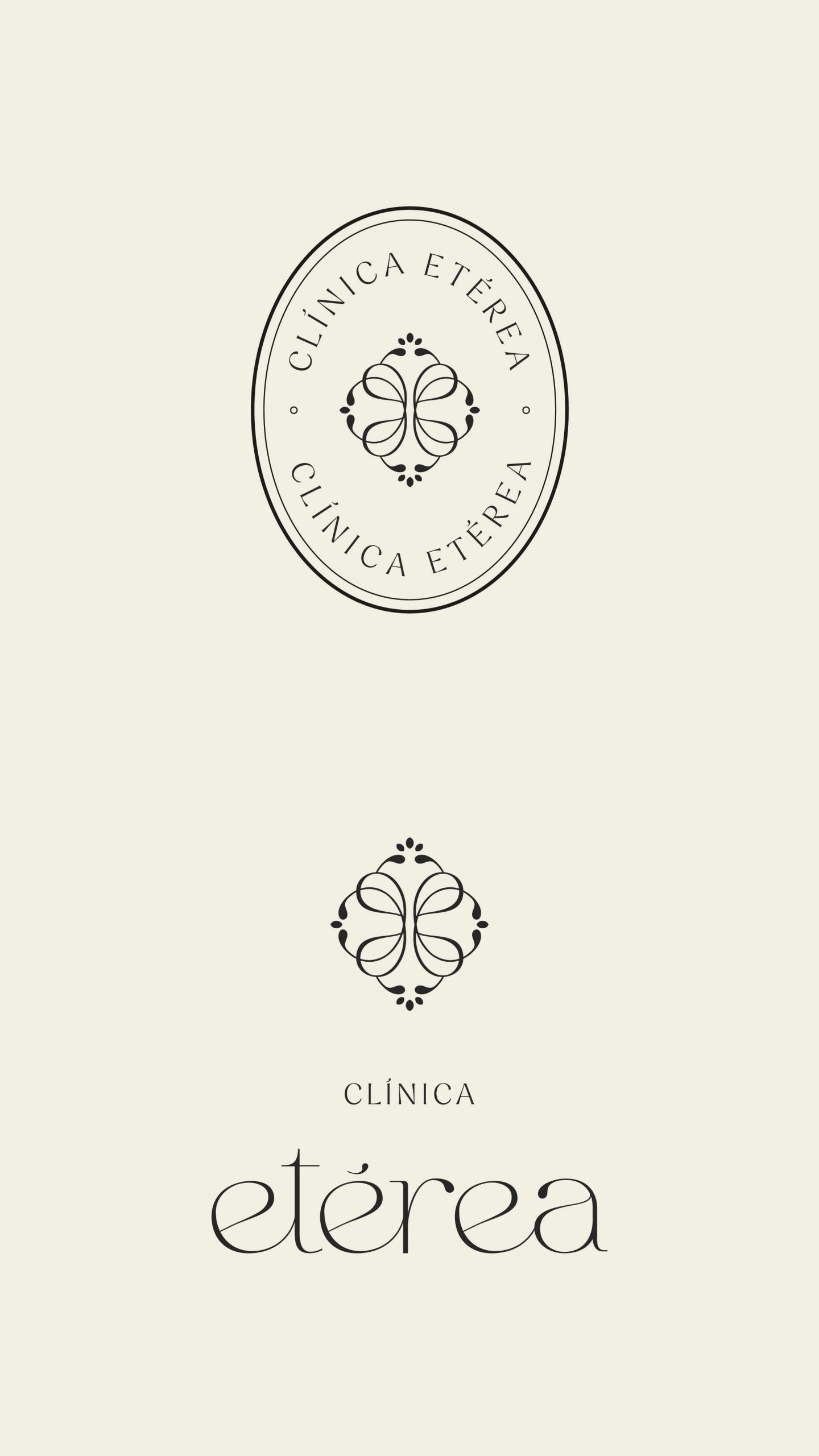 Composición que reúne los principales elementos de identidad visual de Clínica Etérea. Diseñados desde la estrategia, proyectan una imagen coherente, profesional y orientada al bienestar.