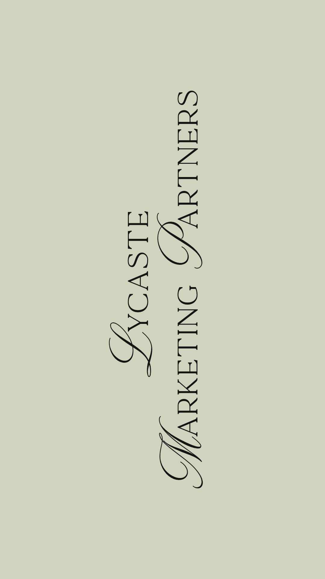 Versión vertical del logotipo de Lycaste Marketing Partners sobre fondo Sage Green, reforzando la estética botánica, elegante y calmada definida en el branding. Diseño desarrollado por Manawa Creative mediante dirección visual estratégica.